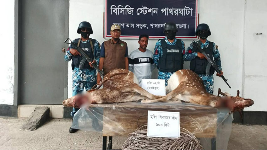 বরগুনায় কোস্ট গার্ডের অভিযানে ২টি জবাইকৃত হরিণ উদ্ধার, শিকারি আটক