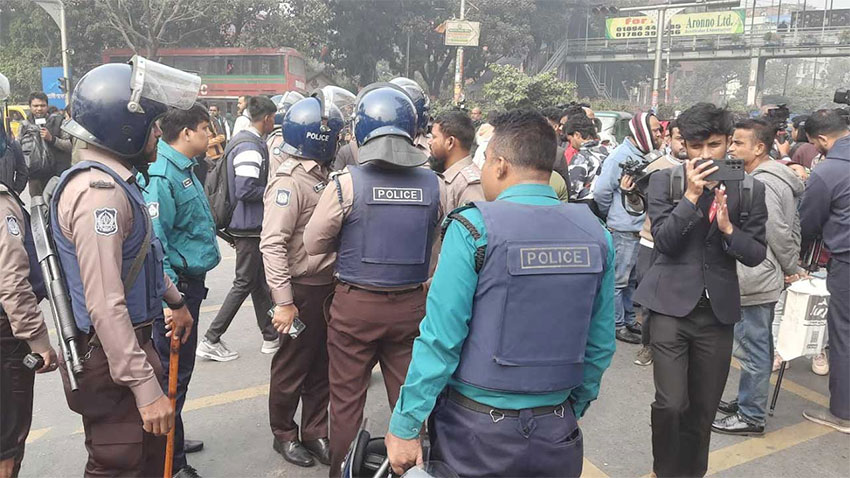 পুলিশ ও মোবাইল ফোন ব্যবসায়ীদের সংঘর্ষে রণক্ষেত্র কারওয়ান বাজার