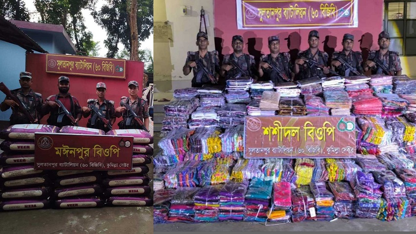 বিজিবি-৬০ ব্যাটালিয়নের অধিনায়ক লে. কর্নেল মো. জিয়াউর রহমান জানান, ব্রাহ্মণবাড়িয়া জেলার কসবা উপজেলা এবং কুমিল্লা জেলার ব্রাহ্মণপাড়ার সীমান্তবর্তী এলাকায় বিশেষ অভিযান পরিচালনা করা হয়। এ সময় ২ কোটি ১১ লাখ ৫ হাজার টাকা মূল্যের ভারতীয় উন্নতমানের শাড়ি এবং পিকআপসহ বাসমতী চাউল জব্দ করা হয়।