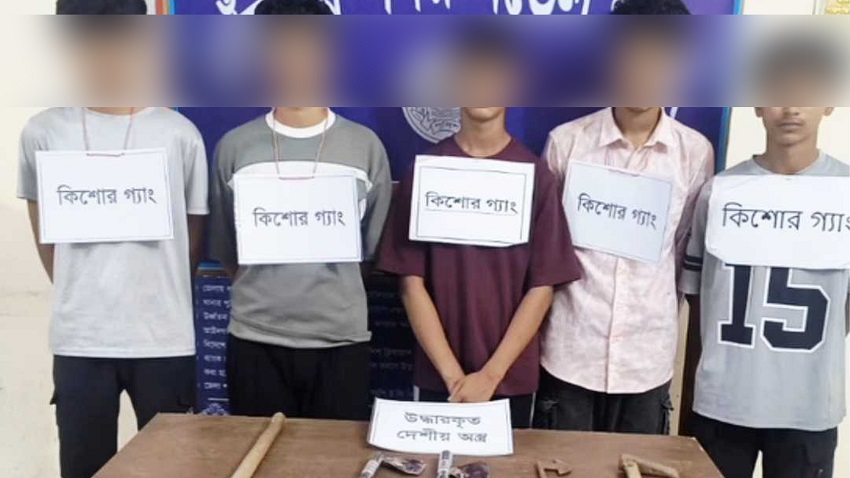 প্রতিপক্ষের ওপর হামলার প্রস্তুতি নিচ্ছিল একদল কিশোর গ্যাং। দেশীয় অস্ত্রশস্ত্র নিয়ে অবস্থান করলেও শেষ রক্ষা হয়নি তাদের। চাঁদপুর শহরে অভিযান চালিয়ে কিশোর গ্যাংয়ের এমন পাঁচ সদস্যকে আটক করেছে যৌথ বাহিনী।