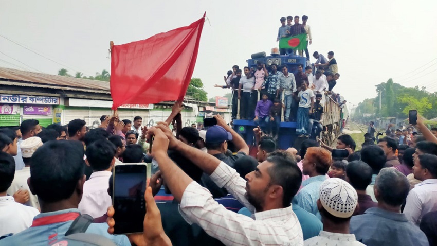 কুষ্টিয়ায় সাত দফা দাবিতে ট্রেন থামিয়ে অবরোধ