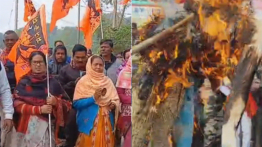 বেনাপোলের ওপর ভারত সীমান্তের পেট্রাপোল এলাকায় বিজেপির নেতা কর্মীরা বিক্ষোভ মিছিল স্লোগান ও কুশপুত্তলিকা পুড়িয়ে