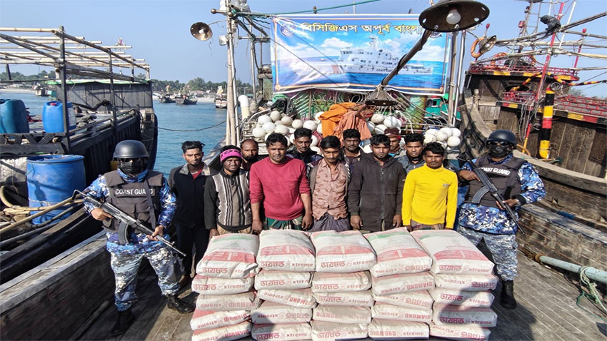 তিনি বলেন, গোপন সংবাদের ভিতিত্তে গত ২ জানুয়ারি ২০২৬ তারিখ শুক্রবার রাত ১০টায় কোস্ট গার্ড জাহাজ অপূর্ব বাংলা কর্তৃক সেন্টমার্টিন হতে দক্ষিণ-পশ্চিম সংলগ্ন সমুদ্র এলাকায় একটি বিশেষ অভিযান পরিচালনা করা হয়। অভিযান চলাকালে উক্ত এলাকায় সন্দেহজনক ১টি ফিশিং বোট তল্লাশি করে অবৈধভাবে শুল্ক-কর ফাঁকি দিয়ে মায়ানমারে পাচারের উদ্দেশ্যে বহনকৃত প্রায় ৩ লক্ষ টাকা মূল্যের ৬ শত বস্তা সিমেন্টসহ ১১ জন বাংলাদেশী পাচারকারীকে আটক করা হয়।