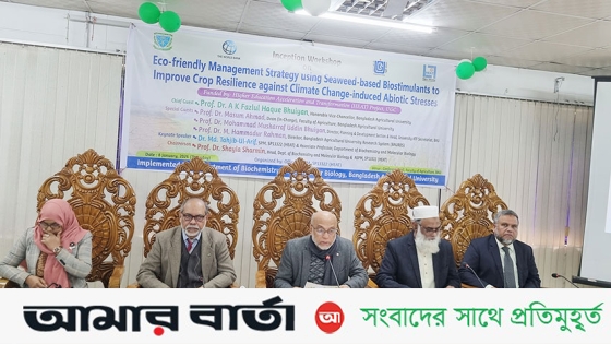 বৃহস্পতিবার (৮ জানুয়ারি) দুপুরে বিশ্ববিদ্যালয়ের কৃষি অনুষদের সম্মেলন হলে ‘জলবায়ু পরিবর্তনজনিত অজৈব চাপ মোকাবিলায় ফসলের সহনশীলতা বৃদ্ধিতে সামুদ্রিক শৈবালভিত্তিক বায়োস্টিমুল্যান্ট ব্যবহারের পরিবেশবান্ধব কৌশল’ শীর্ষক এক উদ্ভাবনী কর্মশালায় এই গবেষণার বিভিন্ন দিক তুলে ধরা হয়।