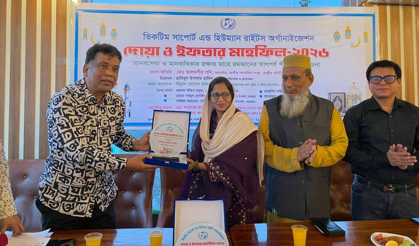পবিত্র মাহে রমজান উপলক্ষে ভিকটিম সাপোর্ট এন্ড হিউম্যান রাইটস অর্গানাইজেশন (ঠঝঐঙ) আয়োজিত মানবসেবা ও মানবাধিকার রক্ষায় মাহে রমজানের তাৎপর্য শীর্ষক আলোচনা সভা, দোয়া ওই ইফতার মাহফিল ২১ ফেব্রুয়ারি শনিবার সন্ধায় নারায়ণগঞ্জ শহরের জামতলাস্থ স্কাই কিচেন চাইনীজে অনুষ্ঠিত হয়। অর্গনাইজেশনের চেয়ারম্যান এ্যাডভোকেট শাহানাজ জামানের সভাপতিত্বে ও মহাসচিব সাফায়েত সারদীনের সঞ্চালনায় অনুষ্ঠানে প্রধান অতিথি হিসেবে ছিলেন জাতীয় সাংবাদিক সংস্থার কেন্দ্রীয় কমিটির মহাসচিব আব্দুল্লাহ মুহাম্মদ আলমগীর গণি। উদ্বোধণী বক্তব্য রাখেন বাংলাদেশের খ্যাতিমান চলচ্চিত্র পরিচালক ও প্রযোজক হাবিবুল ইসলাম হাবিব। প্রধান আলোচক হিসেবে গুরুত্বপূর্ণ আলোচনা করেন এনটিভি ও দৈনিক মানবজমিন এর স্টাফ রিপোর্টার বিল্লাল হোসেন রবিন। অতিথি হিসেবে ছিলেন জাতীয় সাংবাদিক সংস্থার যুগ্ম মহাসচিব ও দৈনিক বিজয় পত্রিকার সম্পাদক সাব্বির আহমেদ সেন্টু,সাংগঠনিক সচিব মেহেদি হাসান,বাংলা একাডেমির জীবন সদস্য মুহাম্মদ জালাল উদ্দিন নলুয়া,আলহাজ্ব লুৎফা জালাল ও বিএসএইচও’র উপদেষ্টা ডাঃ নাজমুল হোসাইন সৌরভ। অর্গানাইজেশনের উপদেষ্টা মতিউর রহমান মুক্তির সার্বিক তত্ত্বাবধানে এ সময় অন্যান্যের মধ্যে আয়োজনে অংশ নেন সংগঠনের সহ-সভাপতি ইঞ্জিনিয়ার আফজাল হোসেন তপন, সহ-যুগ্ম সাধারণ রায়হান আহাম্মেদ ভূঁইয়া,অর্থ সম্পাদক মোহাম্মদ তাজুল ইসলাম, ত্রাণ ও পুনর্বাসন সম্পাদক মঞ্জুর আহমেদ মুন্না, ক্রীড়া বিষয়ক সম্পাদক, সাফাত আলম শামিম, নির্বাহী সদস্য অ্যাডভোকেট মোজাম্মেল হক হিরু,খন্দকার আরিফ আহমেদ নিপু, মো: সিনাফি, কাজী জুবায়েদ, মো: রিয়াজ, তারেক আজিজ প্রমুখ।