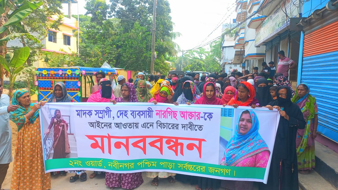নবীনগরে নারগিছ আক্তারের বিরুদ্ধে মাদক-দেহ ব্যবসার অভিযোগ এনে মানববন্ধন