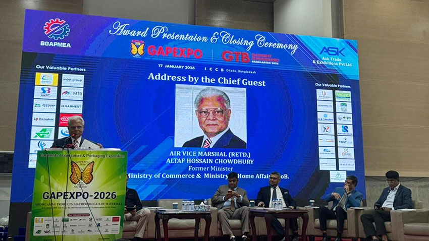 শনিবার (১৭ জানুয়ারি) রাজধানীর ইন্টারন্যাশনাল কনভেনশন সিটি বসুন্ধরা (আইসিসিবি)-তে অনুষ্ঠিত গার্মেন্ট টেকনোলজি বাংলাদেশ (জিটিবি) ২০২৬-এর সমাপনী অনুষ্ঠানে এসব কথা বলেন তারা।