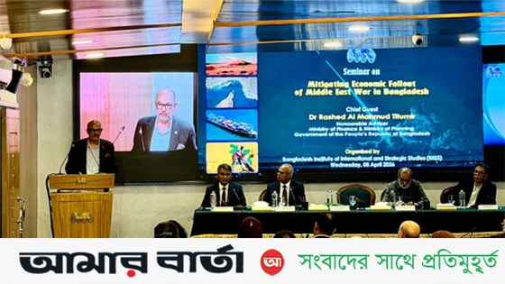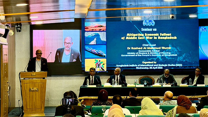 বাংলাদেশ ইনস্টিটিউট অফ ইন্টারন্যাশনাল অ্যান্ড স্ট্র্যাটেজিক স্টাডিজ (বিআইআইএসএস) আজ বুধবার (০৮ এপ্রিল) তাদের মিলনায়তনে 'বাংলাদেশে মধ্যপ্রাচ্য যুদ্ধের অর্থনৈতিক প্রভাব প্রশমন' শীর্ষক একটি সেমিনারের আয়োজন করে। গণপ্রজাতন্ত্রী বাংলাদেশ সরকারের অর্থ মন্ত্রণালয় ও পরিকল্পনা মন্ত্রণালয়ের মাননীয় উপদেষ্টা ড. রাশেদ আল মাহমুদ তিতুমির প্রধান অতিথি হিসেবে অনুষ্ঠানে উপস্থিত ছিলেন। অনুষ্ঠানে তিনজন বিশিষ্ট বক্তা উক্ত বিষয়ে তাদের মতামত তুলে ধরেন।