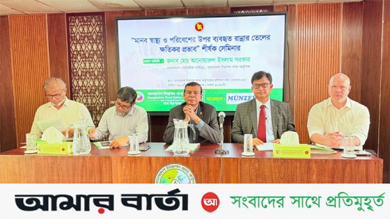বাংলাদেশ নিরাপদ খাদ্য কর্তৃপক্ষ (বিএফএসএ) এবং মুয়েন্জার বাংলা প্রাইভেট লিমিটেড-এর যৌথ উদ্যোগে “মানব স্বাস্থ্য ও পরিবেশের উপর ব্যবহৃত রান্নার তেলের ক্ষতিকর প্রভাব’’ শীর্ষক একটি সচেতনতামূলক সেমিনারে প্রধান অতিথির বক্তব্যে বাংলাদেশ নিরাপদ খাদ্য কর্তৃপক্ষের চেয়ারম্যান (অতিরিক্ত দায়িত্ব) মো: আনোয়ারুল ইসলাম সরকার এ আহবান করেন।