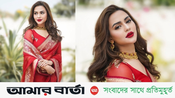 লাল শাড়িতে সবার নজর কাড়লেন নুসরাত ফারিয়া