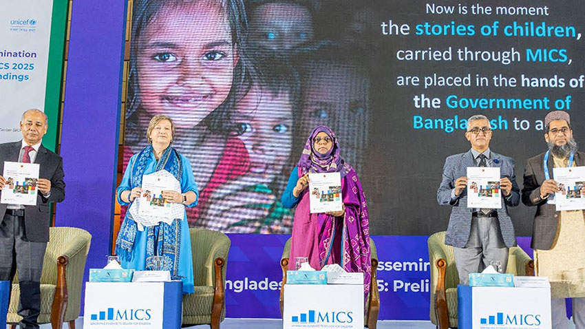 রোববার (১৬ নভেম্বর) রাজধানীর একটি অডিটোরিয়ামে জরিপের ফল প্রকাশ করেন বিবিএসের মহাপরিচালক মোহাম্মদ মিজানুর রহমান ও ইউনিসেফের প্রতিনিধি রানা ফ্লাওয়ার্স। ৬৩ হাজার পরিবারের ওপর করা এই জরিপে পুষ্টি, স্বাস্থ্য, শিক্ষা, স্যানিটেশন থেকে শুরু করে শিশুশ্রম ও সহিংসতা— সব ক্ষেত্রেই এক অসম বাস্তবতা উঠে এসেছে।