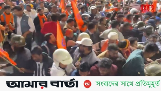 এর আগে আজ সকালের দিকে ভারতের রাজধানী নয়াদিল্লিতে বাংলাদেশ হাইকমিশনের সামনে বিশাল বিক্ষোভ শুরু হয়। বিক্ষোভকারীরা নিরাপত্তা ব্যারিকেড ভেঙে হাইকমিশনের ভেতরে ঢোকার চেষ্টা চালায়। পরিস্থিতি নিয়ন্ত্রণে আনতে আশপাশ এলাকায় নিরাপত্তা বাহিনীর উপস্থিতি বাড়ানো হয়।