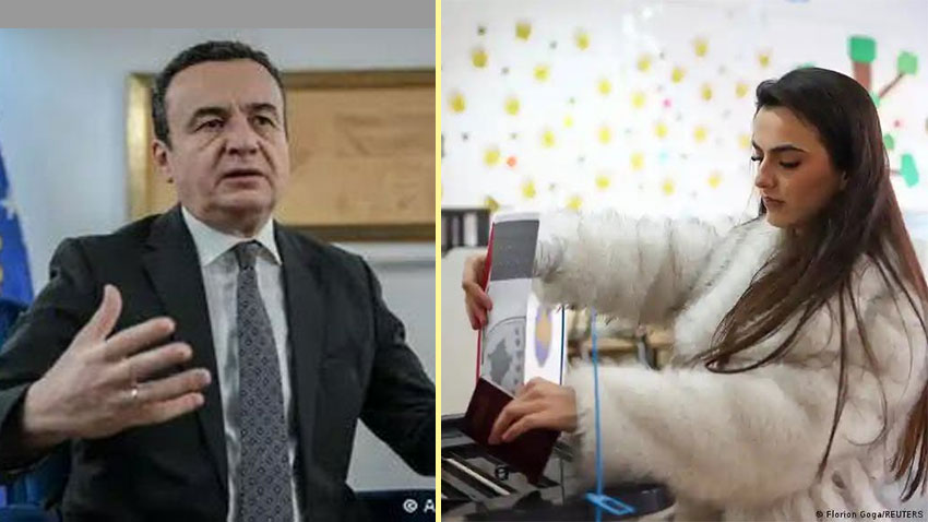 প্রধানমন্ত্রী আলবিন কুর্তি ও ভোট দিচ্ছেন একজন নারী ভোটার