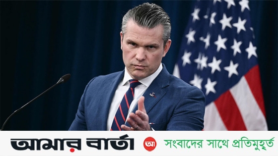 মার্কিন প্রতিরক্ষামন্ত্রী পিট হেগসেথ পেন্টাগনে সংবাদ সম্মেলনে বক্তব্য দেন।