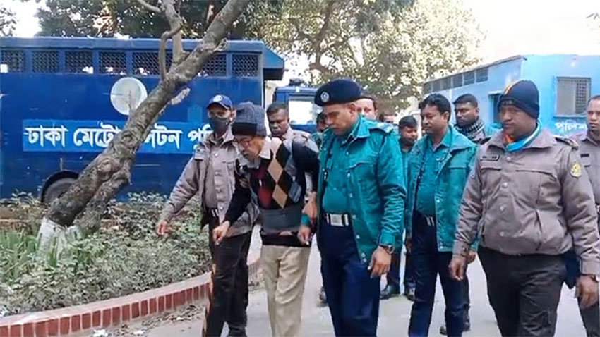 চব্বিশের জুলাই-আগস্ট আন্দোলন ঘিরে কুষ্টিয়ায় ছয় হত্যা, উসকানি, ষড়যন্ত্রসহ আট অভিযোগে মানবতাবিরোধী অপরাধের মামলায় জাসদ সভাপতি হাসানুল হক ইনুর বিরুদ্ধে সাক্ষ্য দিচ্ছেন কনস্টেবল মাসুদ রানা।