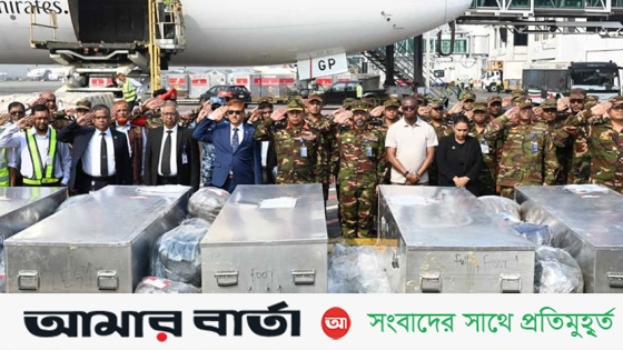 আইএসপিআর জানায়, গত ১৩ ডিসেম্বর সুদানের আবেই এলাকায় জাতিসংঘ শান্তিরক্ষা মিশনের একটি ঘাঁটিতে সংঘটিত বর্বরোচিত সন্ত্রাসী ড্রোন হামলার ঘটনায় শাহাদাৎ বরণকারী ৬ জন শান্তিরক্ষীর মরদেহ শনিবার হযরত শাহজালাল আন্তর্জাতিক বিমানবন্দরে এমিরেটস এয়ারলাইন্সের একটি বিমানে দেশে প্রত্যাবর্তন করে।