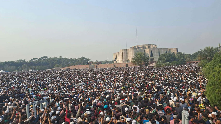 কয়েক লাখ মানুষের অংশগ্রহণে জাতীয় সংসদ ভবন এলাকায় ইনকিলাব মঞ্চের মুখপাত্র শহীদ শরিফ ওসমান হাদির