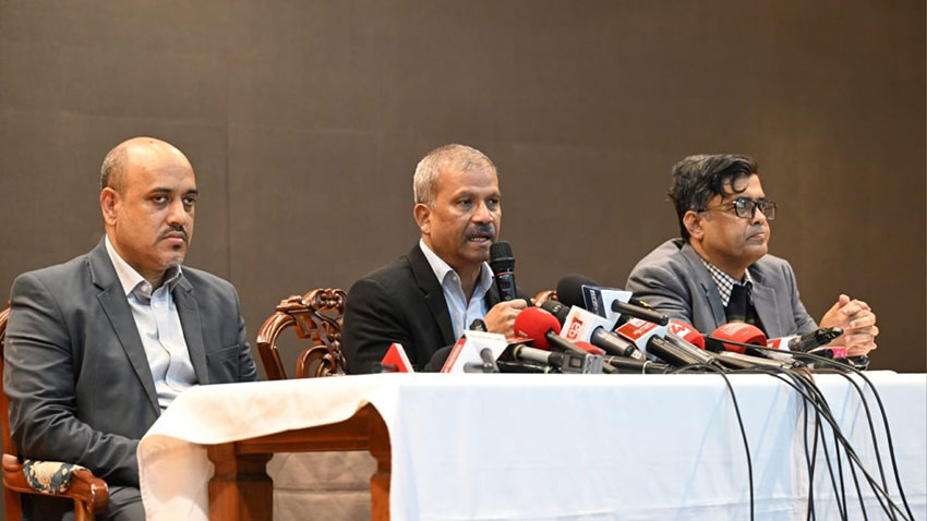 রাজধানীর ফরেন সার্ভিস একাডেমিতে আয়োজিত সংবাদ ব্রিফিংয়ে আইন উপদেষ্টা আসিফ নজরুল