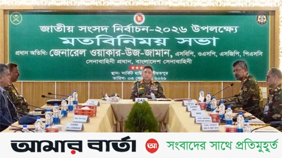 আজ আন্তঃবাহিনী জনসংযোগ পরিদপ্তরের (আইএসপিআর) এক সংবাদ বিজ্ঞপ্তিতে জানায়, সেনাবাহিনী প্রধান শরীয়তপুর জেলা সার্কিট হাউজের সম্মেলন কক্ষে ঊর্ধ্বতন পর্যায়ের সামরিক কর্মকর্তা, ঢাকা বিভাগের শরীয়তপুর, ফরিদপুর ও মুন্সিগঞ্জ জেলার বিভিন্ন আইনশৃঙ্খলা রক্ষাকারী বাহিনী ও অসামরিক প্রশাসনের কর্মকর্তাদের সঙ্গে মতবিনিময় করেন। মতবিনিময়কালে আসন্ন জাতীয় সংসদ নির্বাচনকে শান্তিপূর্ণ, নিরপেক্ষ ও সুষ্ঠুভাবে সম্পন্ন করার লক্ষ্যে আন্তঃপ্রাতিষ্ঠানিক সমন্বয় এবং সামগ্রিক নিরাপত্তা ব্যবস্থাপনা নিয়ে আলোচনা হয়।