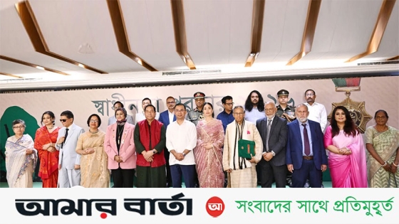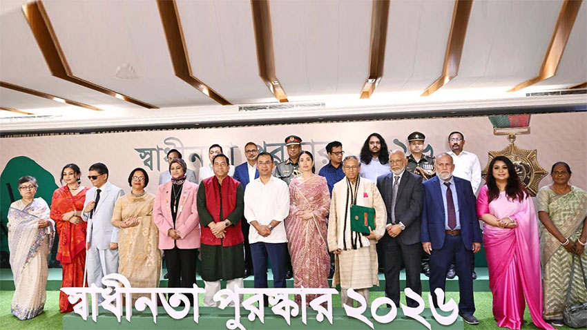 জাতীয় পর্যায়ে গৌরবোজ্জ্বল ও কৃতিত্বপূর্ণ অবদানের স্বীকৃতিস্বরূপ দেশের সর্বোচ্চ বেসামরিক সম্মাননা ‘স্বাধীনতা পুরস্কার-২০২৬’ প্রাপ্তদের হাতে পদক তুলে দিয়েছেন প্রধানমন্ত্রী তারেক রহমান। সাবেক প্রধানমন্ত্রী খালেদা জিয়ার পক্ষে স্বাধীনতা পুরস্কার গ্রহণ করলেন জাইমা রহমান।