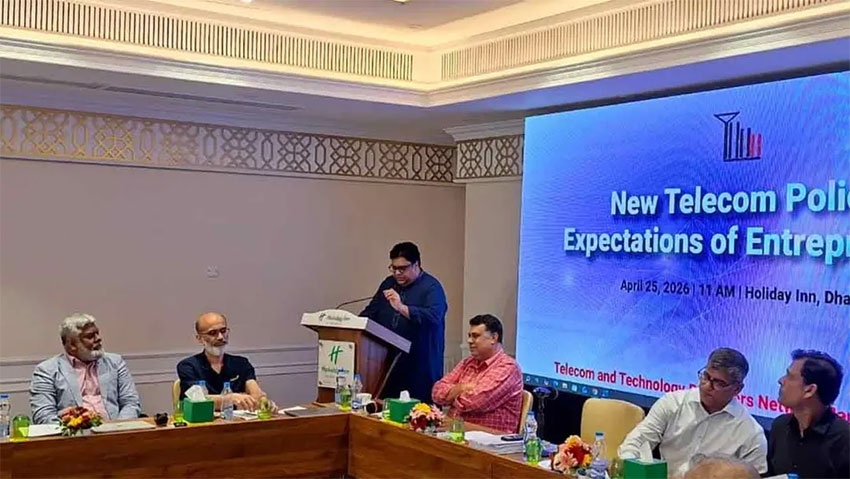 তিনি বলেন, টেলিকম খাতকে রাজনৈতিক দৃষ্টিভঙ্গি থেকে দেখা উচিত নয়। এটি দেশের অন্যতম প্রধান চালিকাশক্তি হতে পারে। ভবিষ্যতে প্রযুক্তি খাতই বৈদেশিক মুদ্রা আয়ের বড় উৎস হয়ে উঠতে পারে। আমাদের প্রথম লক্ষ্য হচ্ছে কানেক্টিভিটি নিশ্চিত করা। ৯০ শতাংশ জনগোষ্ঠীকে ৫জি এবং ১০০ এমবিপিএস বা তার বেশি গতির ইন্টারনেটে যুক্ত করার লক্ষ্য নেওয়া হয়েছে। এটি চ্যালেঞ্জিং হলেও উচ্চাকাঙ্ক্ষী লক্ষ্য নিয়েই এগোতে চায় সরকার। একইসঙ্গে কৃত্রিম বুদ্ধিমত্তার ব্যবহারও বাড়ানো হবে। এআইকে হুমকি নয়, বরং বড় সুযোগ হিসেবে দেখছে সরকার।
