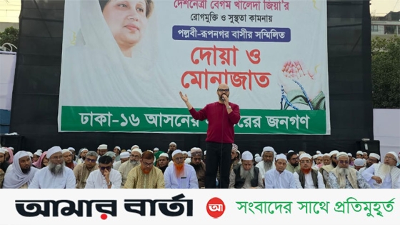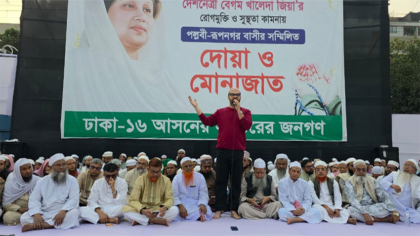 বিএনপির চেয়ারপারসন ও সাবেক প্রধানমন্ত্রী বেগম খালেদা জিয়ার রোগমুক্তি কামনায় রাজধানীর পল্লবী সিটি ক্লাব মাঠে বুধবার (৩ ডিসেম্বর) বাদ আছর দোয়া মাহফিল অনুষ্ঠিত হয়েছে। এতে প্রধান অতিথি হিসেবে বক্তব্য রাখেন বিএনপির কেন্দ্রীয় ক্রীড়া বিষয়ক সম্পাদক ঢাকা মহানগর উত্তর বিএনপির আহবায়ক ও ঢাকা–১৬ আসনে ধানের শীষের প্রার্থী আমিনুল হক।