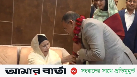 এরপর লাউঞ্জে যাওয়ার পর ফুলের মালা দিয়ে তাকে বরণ করে নেন তার শাশুড়ি। এসময় তারেক রহমানের স্ত্রী জুবাইদা রহমান ও তার মেয়ে জাইমা রহমান সঙ্গে ছিলেন।
