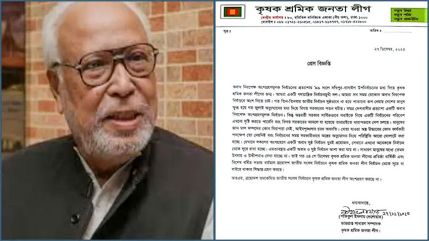 নির্বাচনে অংশ নেবে না কাদের সিদ্দিকীর কৃষক শ্রমিক জনতা লীগ