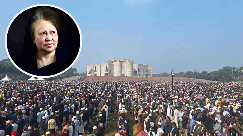 জাতীয় সংসদ ভবনের দক্ষিণ প্লাজায় বিএনপির চেয়ারপারসন খালেদা জিয়ার জানাজা সম্পন্ন হয়েছে। এতে স্মরণকালের রেকর্ডসংখ্যক