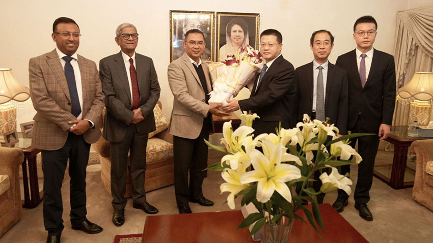 বাংলাদেশের নিযুক্ত চীনা রাষ্ট্রদূত ইয়াও ওয়েনের নেতৃত্বে আগত প্রতিনিধি দলের সঙ্গে বিএনপির ভারপ্রাপ্ত চেয়ারম্যান তারেক