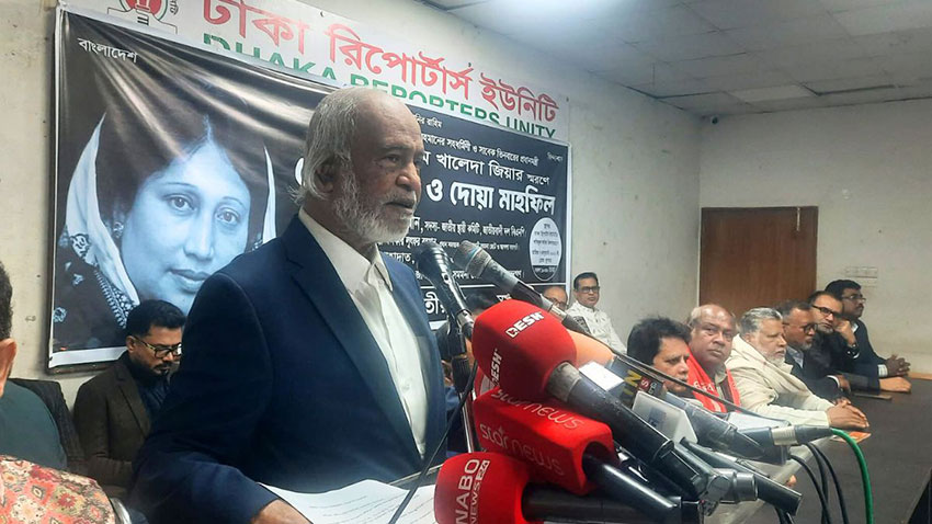 বুধবার (০৭ জানুয়ারি) সকালে ঢাকা রিপোর্টার্স ইউনিটিতে (ডিআরইউ) বিএনপি চেয়ারপারসন খালেদা জিয়ার স্মরণে আয়োজিত এক শোকসভা ও দোয়া মাহফিলে তিনি এ কথা বলেন।