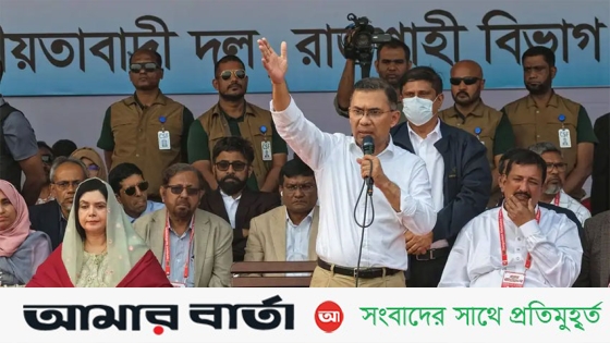 রাজশাহীর ঐতিহাসিক মাদরাসা মাঠে নির্বাচনি জনসভায় তারেক রহমান। ছবি: সংগৃহীত