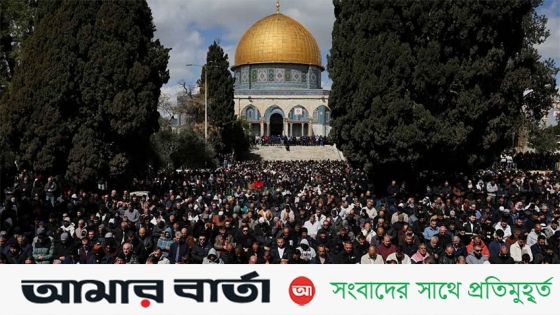অধিকৃত পূর্ব জেরুজালেমে কড়া নিরাপত্তা ও চলাচলে কঠোর সীমাবদ্ধতার মধ্যেও রমজানের দ্বিতীয় জুমায় আল আকসা প্রাঙ্গণে নামাজ আদায় করেছেন অন্তত এক লাখ ফিলিস্তিনি। যুদ্ধ-পূর্ব সময়ের তুলনায় উপস্থিতি কম থাকলেও ধর্মপ্রাণ মুসল্লিদের ঢল ছিল চোখে পড়ার মতো।