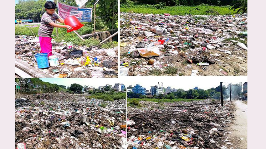 ভৈরব পৌরসভার বিভিন্ন গুরুত্বপূর্ণ সড়ক ও খালের মুখে ময়লার স্তুপ : ছবি- আমার বার্তা