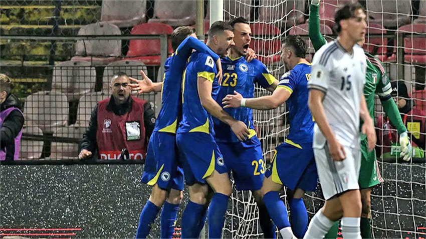 একজন কম নিয়ে খেলায় প্রথমার্ধের শেষদিকে ইতালির রক্ষণভাগে প্রচণ্ড চাপ সৃষ্টি করে বসনিয়া। তবে জিয়ানলুইজি ডোনারুমা দৃঢ় গোলকিপিংয়ে প্রথমার্ধে কোনো গোল হজম করেনি চারবারের বিশ্বচ্যাম্পিয়নরা।