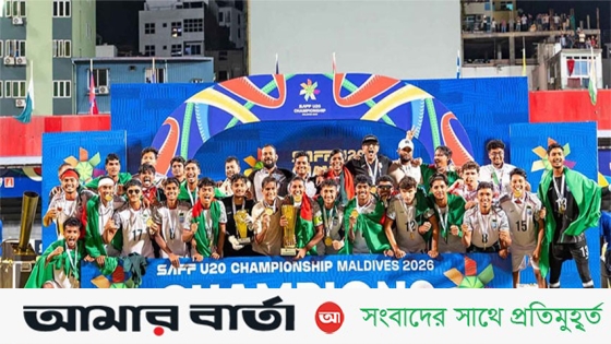 বাংলাদেশের যুব ফুটবল দল টানা দ্বিতীয়বারের মতো অনূর্ধ্ব-২০ সাফ চ্যাম্পিয়নশিপের শিরোপা ঘরে তুলেছে। ভারতকে টাইব্রেকারে হারিয়ে এই সাফল্য অর্জন করার পর শনিবার (৪ এপ্রিল) রাতে দেশে ফিরলে তাদের জন্য অপেক্ষা করছিল উষ্ণ সংবর্ধনা।