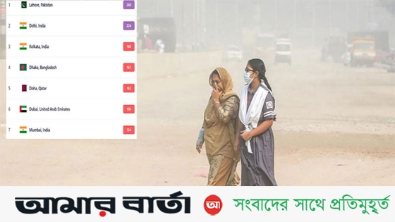 আইকিউএয়ারের দেওয়া তথ্যে দেখা গেছে, দূষিত শহরের তালিকায় প্রথম অস্থানে রয়েছে পাকিস্তানের লাহোর, স্কোর ২৬০, দ্বিতীয় অবস্থানে রয়েছে ভারতের দিল্লি, বায়ুর মানের স্কোর ২২৪, তৃতীয় স্থানে রয়েছে কলকাতা, স্কোর ১৬৮। ১৬৩ স্কোর নিয়ে পঞ্চম স্থানে রয়েছে কাতারের রাজধানী দোহা। দূষিত বাতাসে শীর্ষ দশে থাকা অপর শহরগুলোর বাতাসের মানের স্কোর ১৫৭ থেকে ১৩৯ এর মধ্যে।