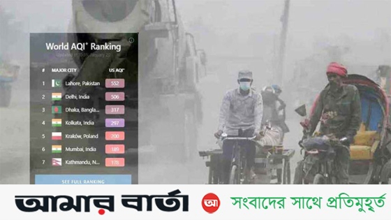 এ ছাড়া একিউআই স্কোর ৫৫২ নিয়ে প্রথম অবস্থানে পাকিস্তানের লাহোর। ৫০৬ স্কোর নিয়ে দ্বিতীয় স্থানে ভারতের দিল্লি এবং ২৯৭ স্কোর নিয়ে চতুর্থ স্থানে রয়েছে ভারতের আরেক শহর কলকাতা।